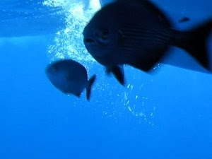 passing beneath my boat – fish about 2 feet long with yellow tails. I'm
